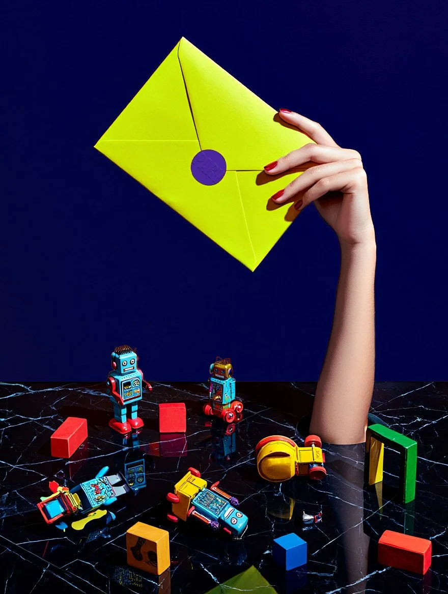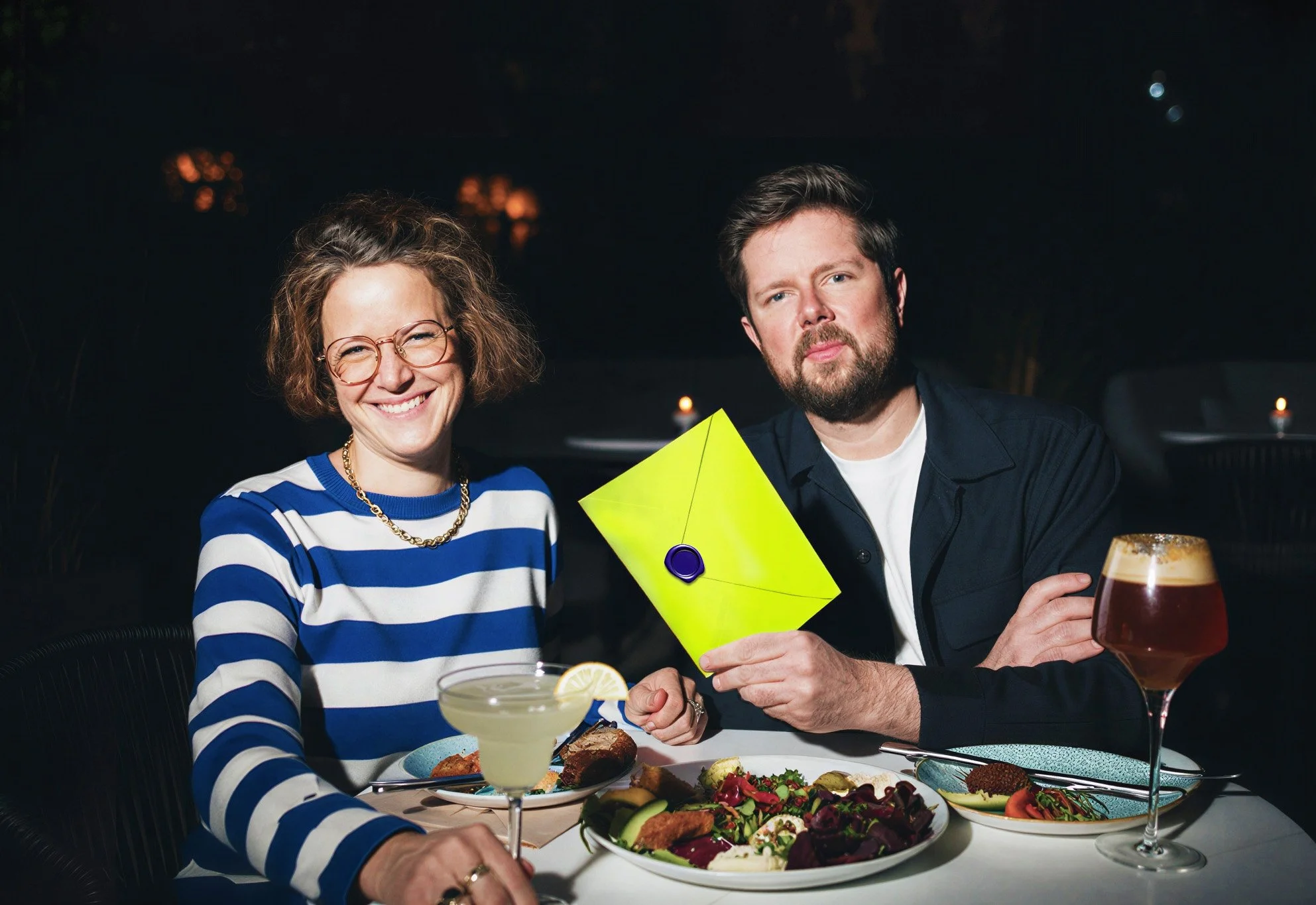An invite delivered to your door in our neon yellow envelope. Three personalised plans, one perfect evening. You pick, we book, we confirm the sitter.